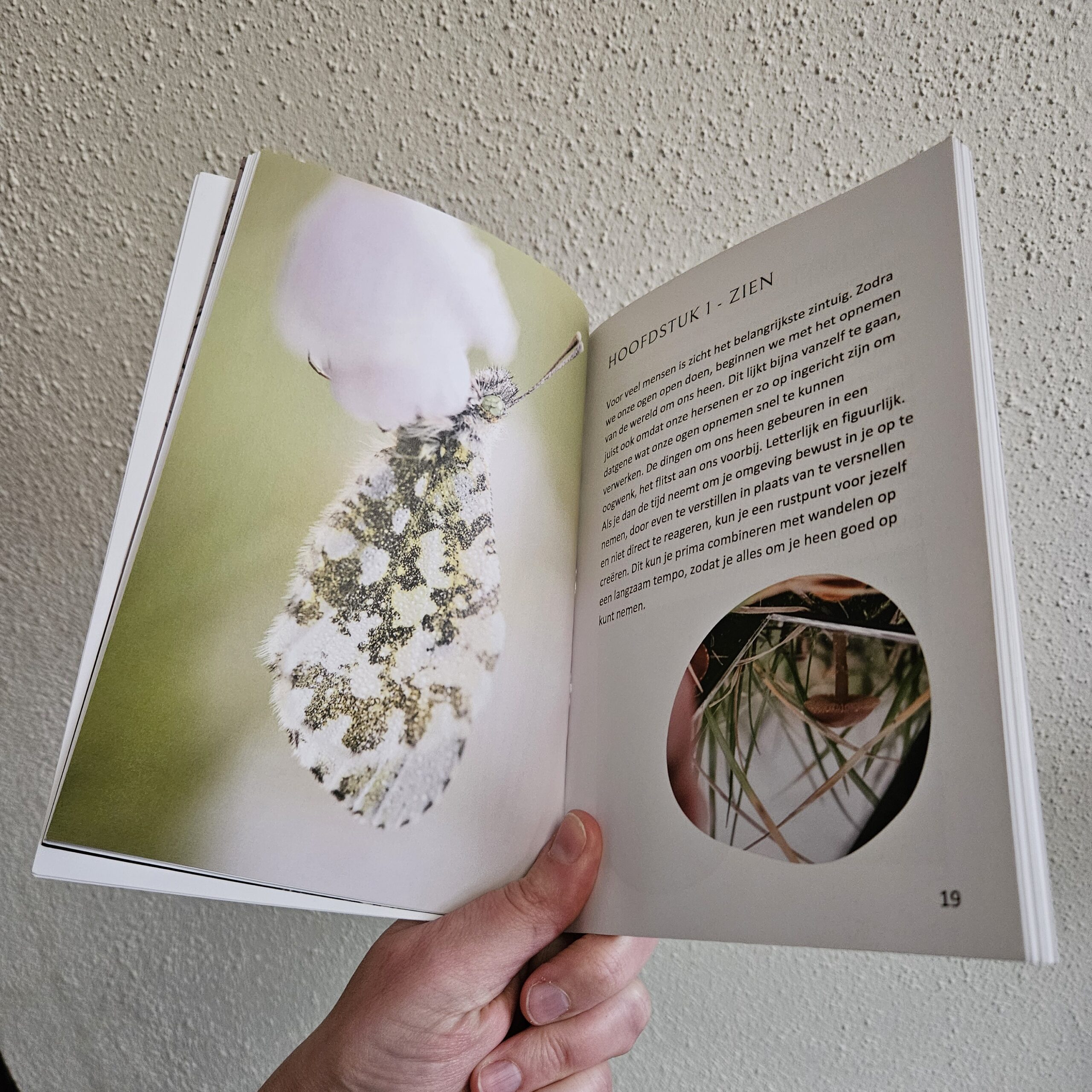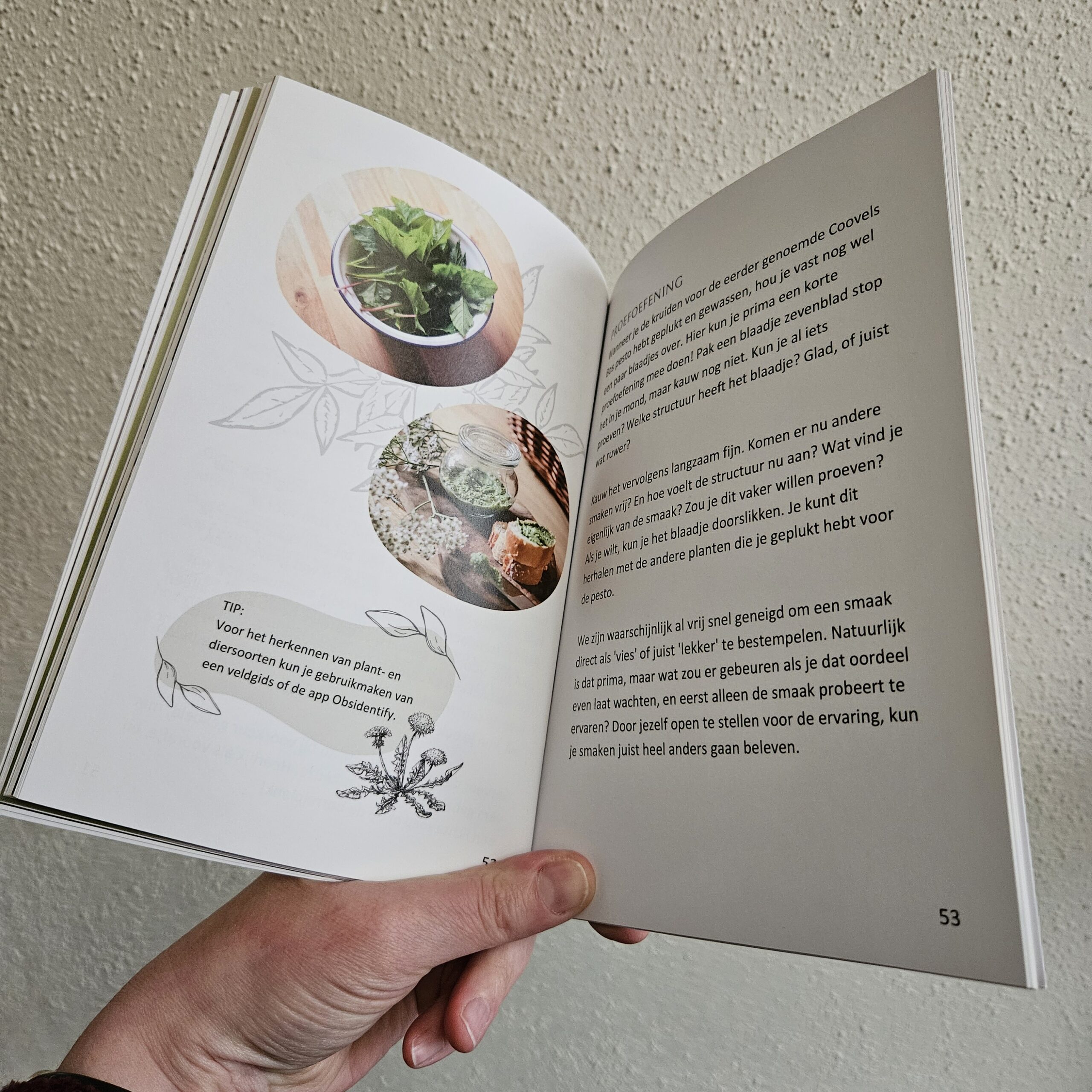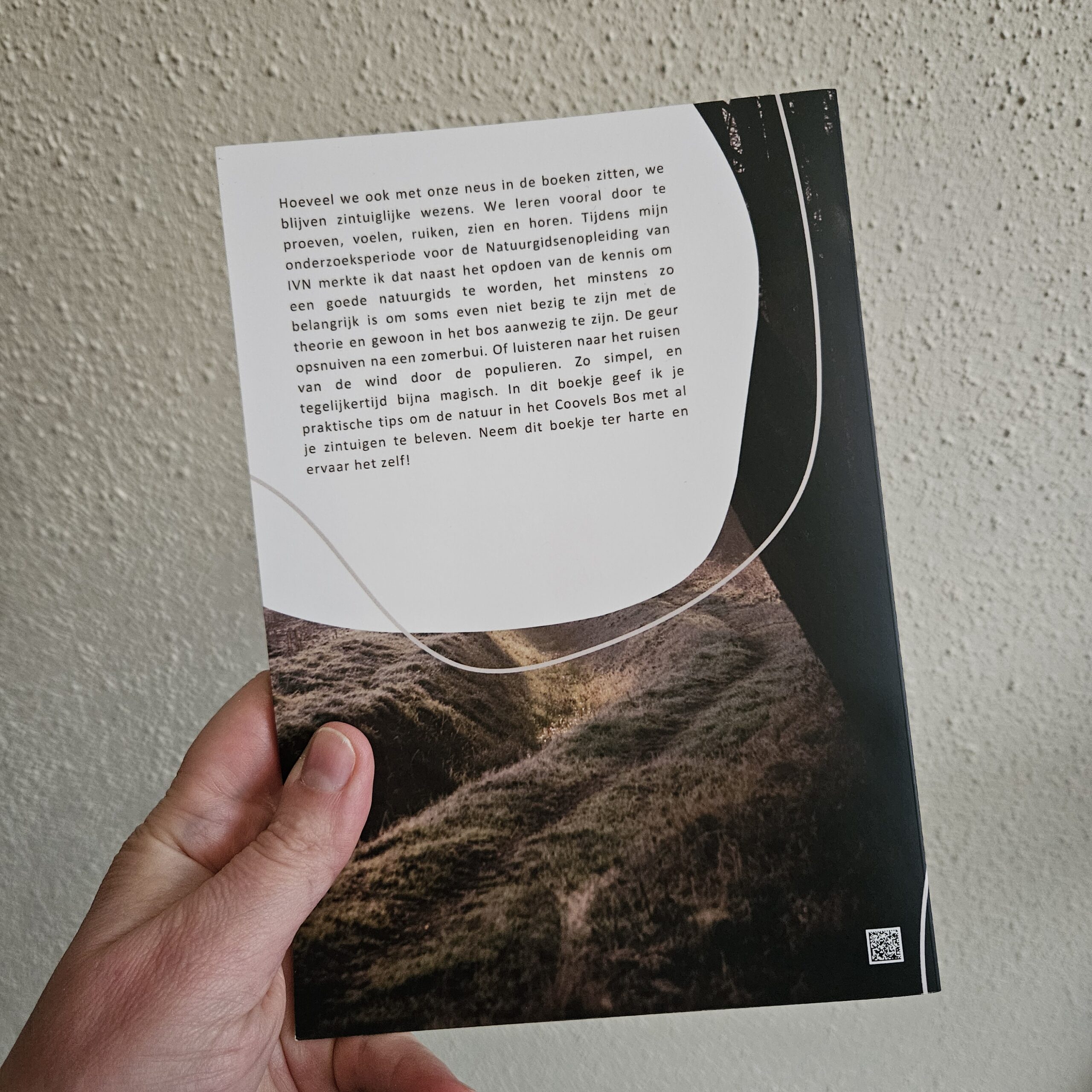Ga eropuit en beleef de natuur! Met dit handzame boekje trek je vol inspiratie het Coovels Bos in om de natuur met al je zintuigen te beleven. Bomvol met uitgebreide tips en verhalen voor het vergroten van je natuurbeleving. Met dit boekje laat ik je graag zien, horen én voelen hoe mooi de natuur om je heen kan zijn. Ook als je hiervoor nog helemaal niet zoveel met de natuur bezig was, is dit boekje perfect! De instructies zijn laagdrempelig en breed toepasbaar en de informatie is toegankelijk en gedoseerd in de tekst verwerkt. Dit boekje daagt je uit om met al je zintuigen aan de slag te gaan, zonder dat je veel voorkennis nodig hebt (die leer je immers vanzelf als je meer op pad gaat).
